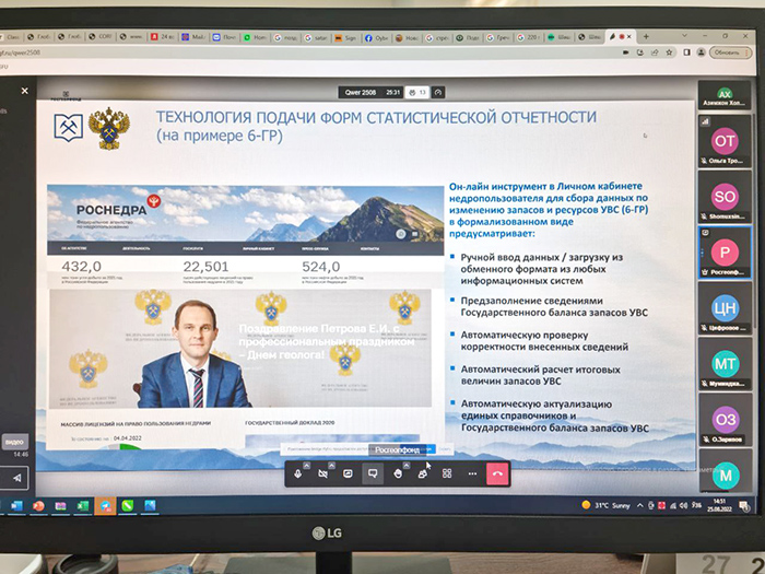 2022 йил 25 август куни Россия Федерацияси ер ости бойликларидан фойдаланиш бўйича Федерал агентлиги (Роснедра) ҳамда Ўзбекистон Республикаси Давлат геология ва минерал ресурслар қўмитаси мутахассислари иштирокида учрашув бўлиб ўтди.